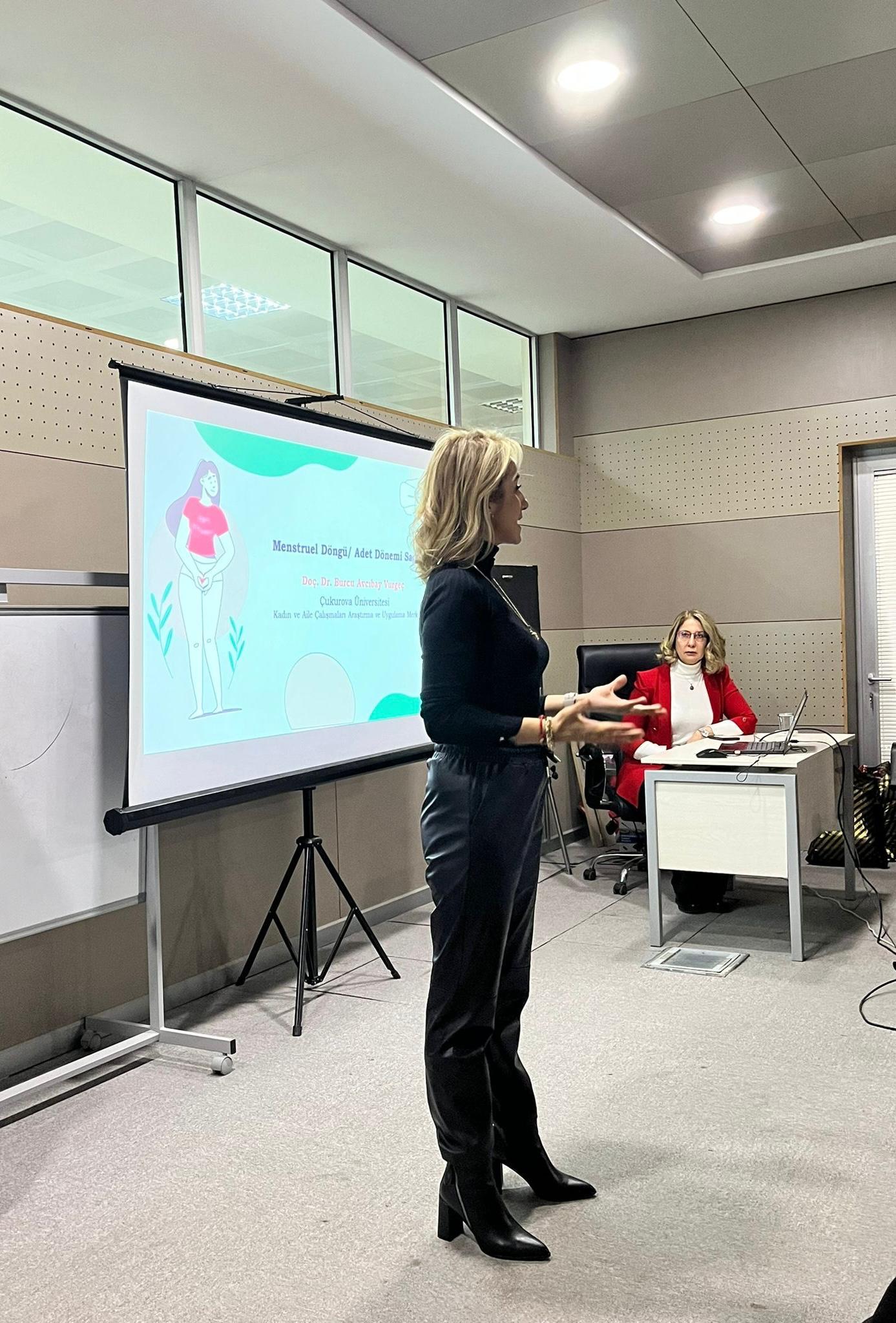 Kadın ve Aile Çalışmaları Uygulama ve Araştırma Merkezi , Adana Sevgi Evleri Çocuk Yuvası ve Kız Yetiştirme Yurdu Müdürlüğü ve Adana Koruyucu Aile Edindirme Derneği işbirliği ile "Menstrüasyon Dögüsü ve Kız Çocuklarında Öz Bakım" Konulu Eğitim